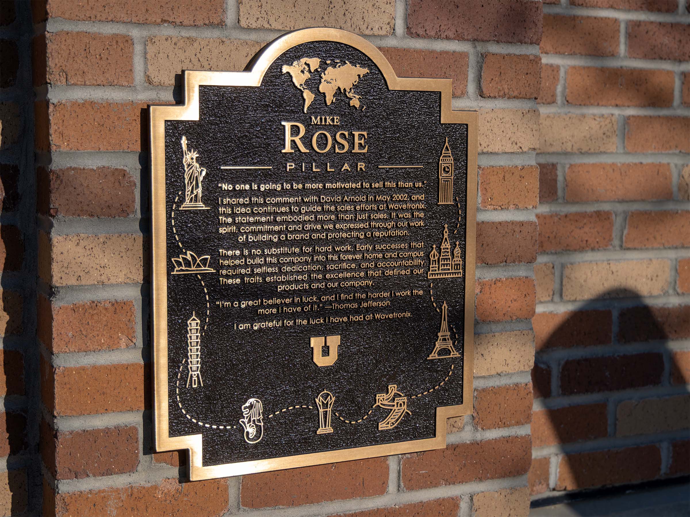A series of bronze plaques to commemorate employees with 20+ years of service at Wavetronix.